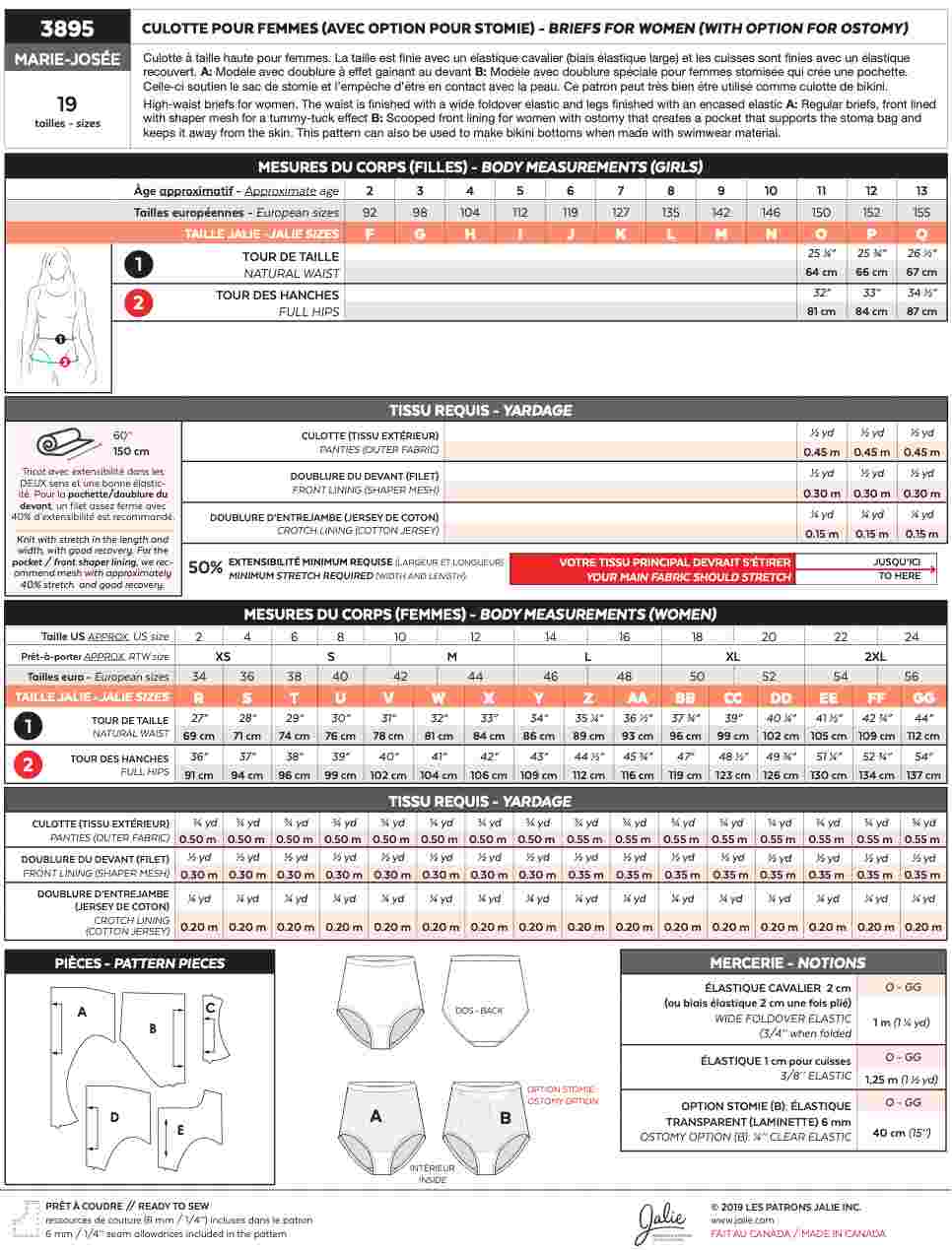 PDF SEWING PATTERN | 3895 | MARIE-JOSÉE Women's Briefs (with ostomy option) | Jalie
