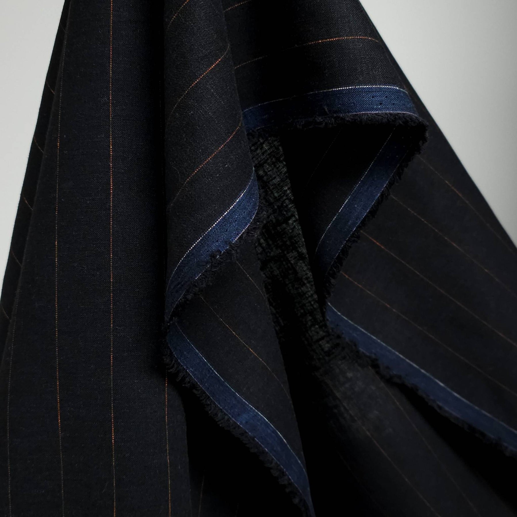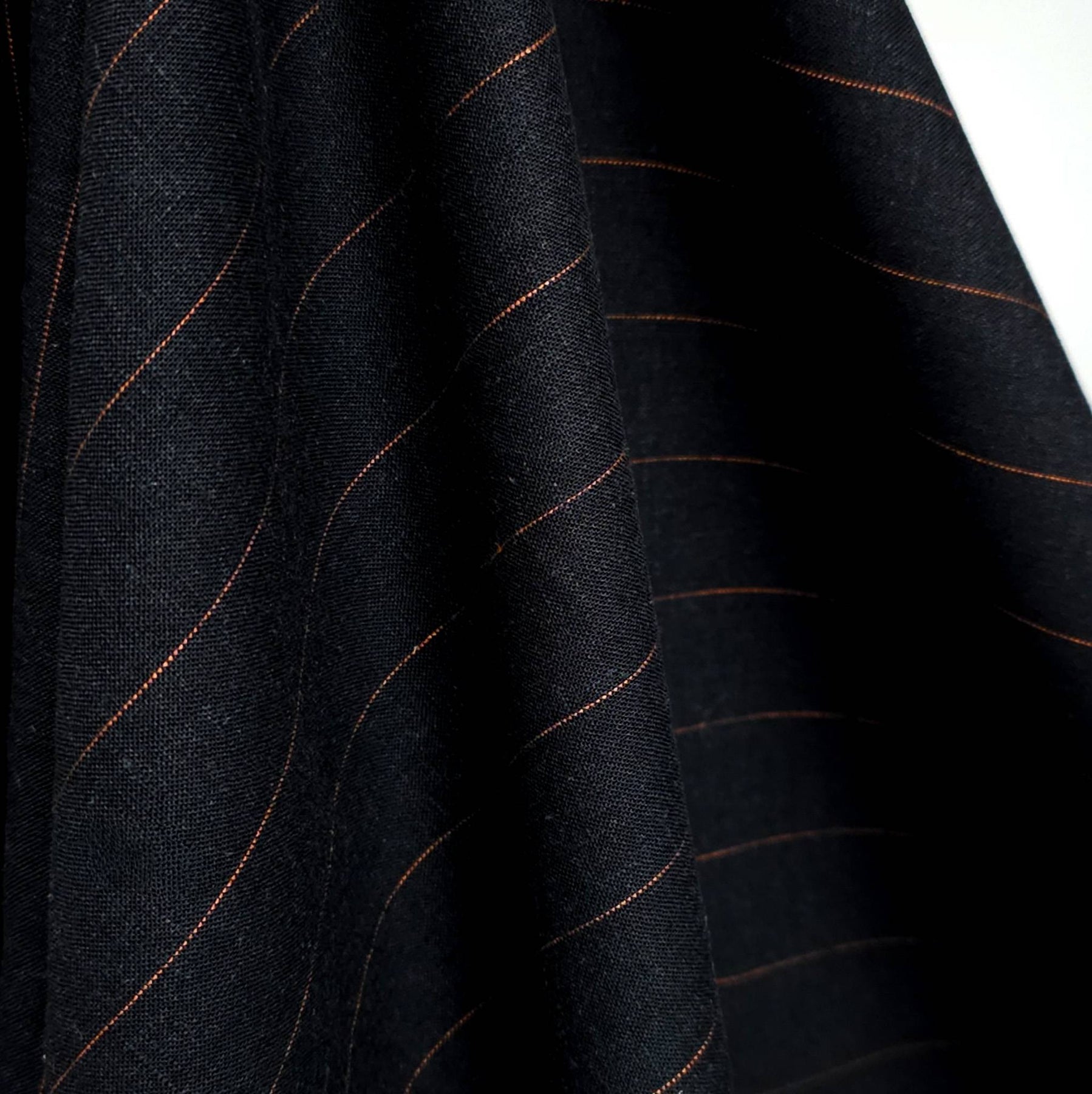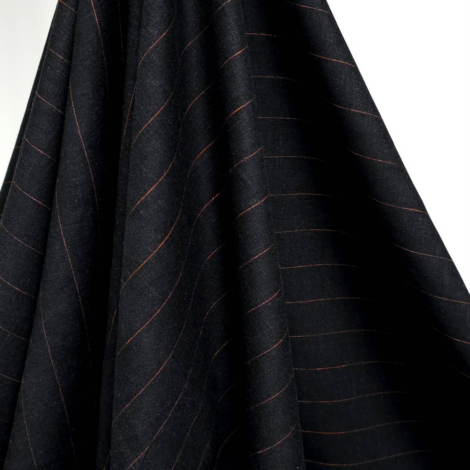 Yarn-Dyed Linen Viscose Pinstripe Fabric | Marigold Exclusive Deadstock | Black with Copper Stripe
